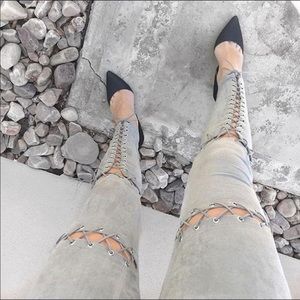 •LAST 1• Black Suede Lace-Up Leggings Pants