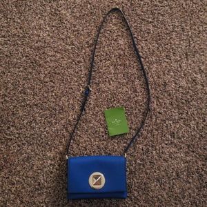 Gently used Kate Spade small leather crossbody in royal blue with adjustable straps!