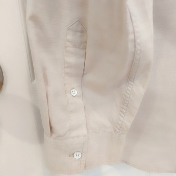 Extra Large Cream dress shirt - Regular Fit - 76% Cotton 24% Polyester - 1 button cuff - Button and Strap at elbow so that shirt can be worn with sleeves rolled up - Double breast pocket with button - Collar stays provided - Worn 1 time - Looks great with black or blue chinos - I am also selling this exact size and style in a Red Color