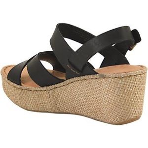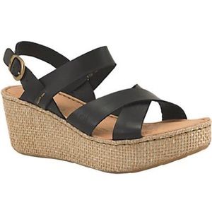Size 11 black Born Tera Women's Sandals. Step into summer in style with the Born Tera sandals. The strappy upper is created from leather with a leather lining. The polyurethane outsole is home to a heel height of 3 inches. The wedge is covered with textile. Opanka hand crafted construction keeps these sandals together.