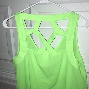 Studio Y Neon green tank top in size large. Great condition and I’ve only wore this twice. It has a patterned back that is perfect for the summer months! It’s super cute paired with some dark jean shorts, jeweled sandals and chunky sunglasses!