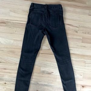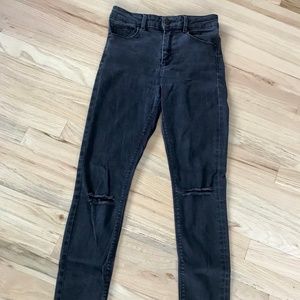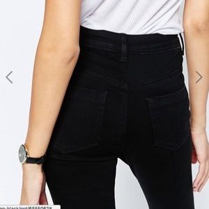 ASOS Denim Ridley High Waist Skinny Jeans In Clean Black 25. 25" waist, 30" leg. Stretchy with slits in the knees. Please contact me with any questions before purchasing. Thank you for looking.
