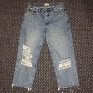 FREE PEOPLE CROPPED BOYFRIEND DISTRESSED JEANS