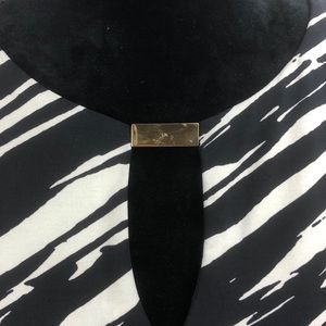 Women’s Size 4. Slinky, flirty dress by Trina Turk with black and cream striped design with keyhole neckline with gold bar detailing. Dress is ore loved, but in great condition. Gold hardware has faint marks and dress has no flaws.
