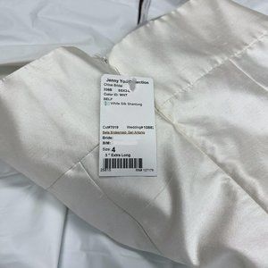 Jenny Yoo White Silk Shantung Mermaid style Wedding Dress. Size 4. Fits true to size (not small like most wedding dresses!) Never been worn! Extra long - perfect if your tall, but you can always get altered. Model in real life pictures is 5’3”. Zipper goes all the way up, but model is too busty for dress.
