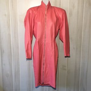 Exquisite piece! Hot pink and super soft in leather texture. Long sleeve with shoulder pad (right shoulder pad has been cut out) the left can be removed to make Dress even or a padding can be added in and sewn up. (See pictures)