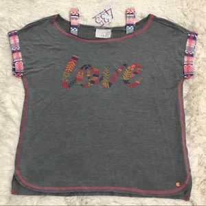 Your girl will “LOVE” this super-soft, embroidered top! It’s on-trend, but still very MJ with its stay-in-place straps and sweet sentiment.