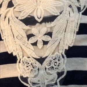 Blue and white wide stripes. Lacey V back. Excellent Condition. Non smoking home.