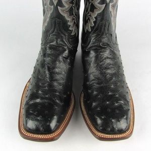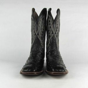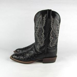 The listed item is a pair of new without box LUCCHESE Men's Black Quill Ostrich Classic Style Square Toe Garrett Size 12 D. They were tried on in the store but not outside.See detailed photos.