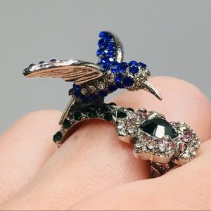 Hummingbird ring Swarovski crystals flower