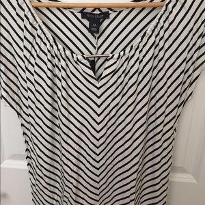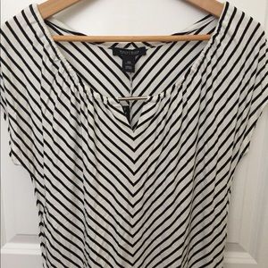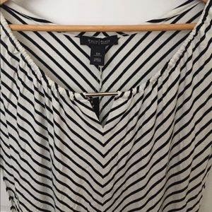 White and black stripe top. Never been worn. Light weight material.Great for dress up or down. Runs one size larger.