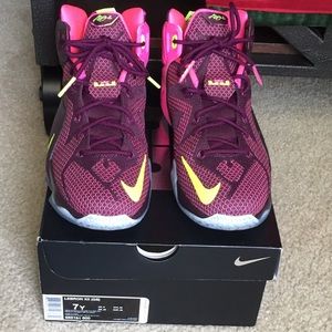Nike Lebron 12 Double Helix Crown jewel merlot sneaker! Worn only twice around the house! Selling from a smoke free and per free home! Kept in great condition! Accepting Offers :-)