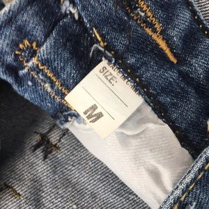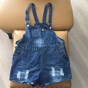 NWOT Blue Denim Overall Shorts. women’s Medium. See picture with size chart.
