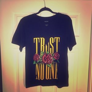 Trust No One Graphic T With Mesh V-Neck