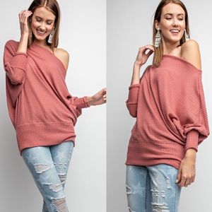 Light and breathable thermal tunic top, uber soft and oversized fit. One shoulder top