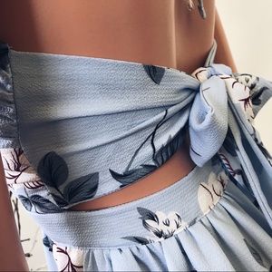 Floral Maxi Dress Slit Front Cutout Halter Blue