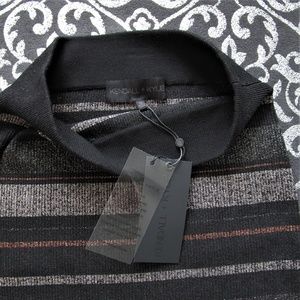 New With Tags Kendall + Kylie Black, Silver, Gold, Bronze Metallic Shimmer Stripe Holiday Print Fitted Midi Party Dress Career Skirt
