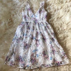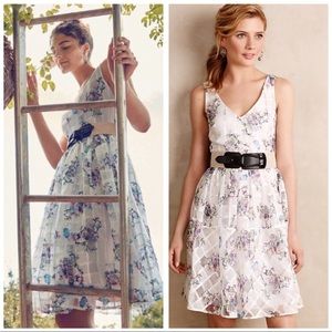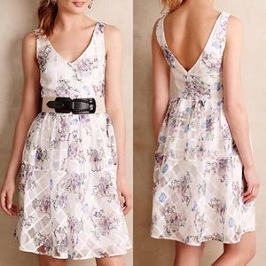Maeve White Floral Peony Garden Dress from Anthropologie. Worn once and in perfect condition! This gorgeous dress features a fitted bodice that flares at the waist, a sheer floral overlay, full white lining and back zipper. It’s even prettier in person! Length 37” bust 16.” Size 4.
