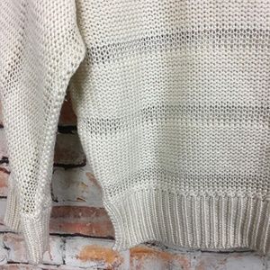 T/O Crop Sweater Ivory Striped Soft Scoop Neck Sz XS Extra Small