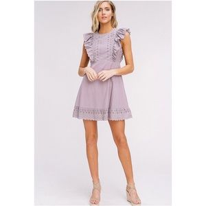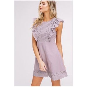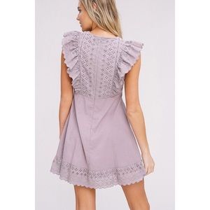 Mauve Embroider Eyelet Ruffle Sleeve Dress