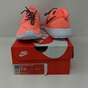 All NWT. NiB. Nice selection of colors and styles of Roshe One Grade school youth sizes. Unisex style as well. Lightweight and breathable with that great Nike sole. A terrific gym shoe for him or her! The 5Y Roshe One is a SE special edition version.