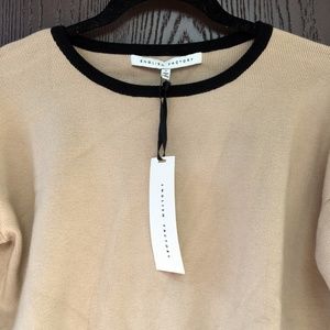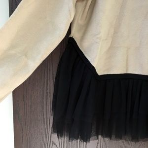 The black trim on camel makes the sweater unique, super cute layered tulle on the bottom.