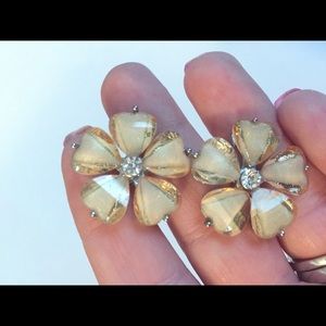 Shimmering Flower Stud Earrings. Gently used condition. Does not come with box but I can place in a dust bag when shipped. Add this listing to a bundle of 4 more items under $10 for special $20 bundle pricing.