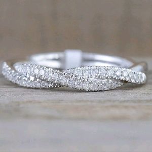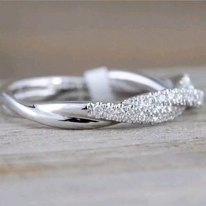 Either silver tone or rose gold tone double twist ring. Stone on top so not to irritate the side/back of finger.