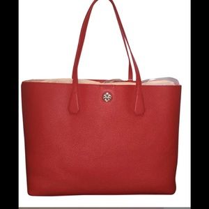 NWT Tory Burch apricot Brody tote. Super cute bag with so much room and compartment for wallet and phone. Leather inside and out feels luxurious and soft . 15”L x 6” W x 11” H