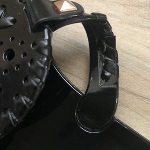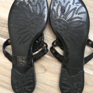 New without box! Jack Rogers black Georgica Jelly sandals Size 7. On the left sandal there is a little piece of leather that sticks out (last picture) but these shoes are in perfect condition and have never been worn