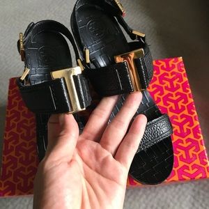 Gorgeous Tory Burch black platforms wedges EUC!