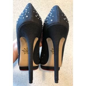 Charlotte Olympia Black Linen Bejeweled stiletto 9