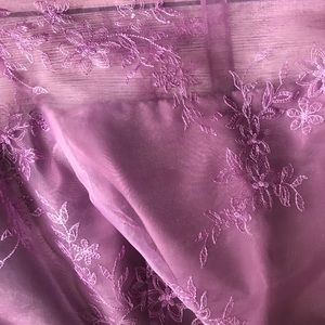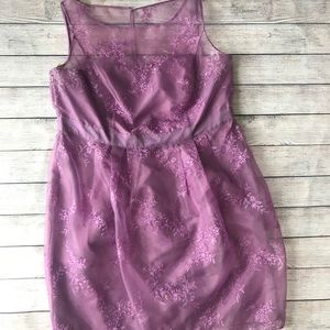 David’s Bridal Sz. 18 bridesmaids dress. Sleeveless with sheer embroidered overlay. Strapless underneath. Worn in 2015, dry cleaned and never worn again.
