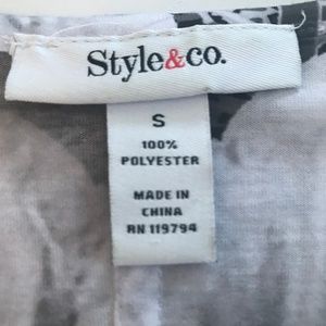 Macy's Style & Co Bat Wing Black White Floral Top S Banded Bottom