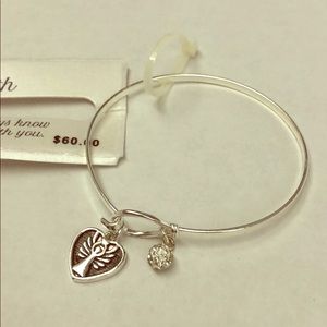 Fine silver plated bracelet with “May you always know angels walk with you” inscribed in the Heart Shaped Charm, with 1 crystal charm.