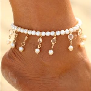 Faux Pearl & Crystal beaded ANKLET JEWLERY. White Ankle Jewelry. Anklet. Casual/Vacation.