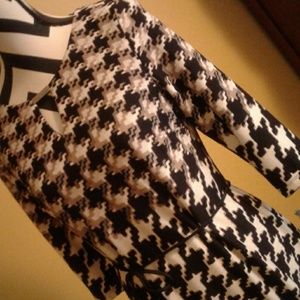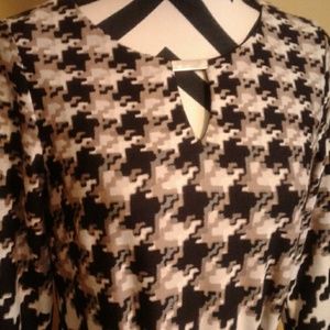 New beautiful black,tan, cream dress nice gold bar @neckline to match belt. 96 polyester 4 spandex. Washable.