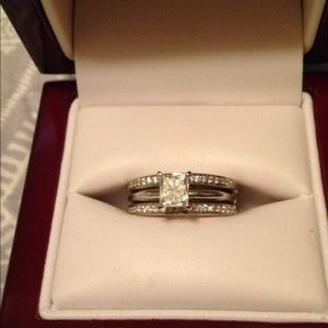 White Gold size 5.5 1 carat princess cut solitaire diamond with .5 carat diamond bands