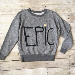 HUGO GUINNESS J. CREW Gray EPIC Print Soft Sweatshirt Top size XXS. In like-new condition with no flaws. Comfy and slightly oversized. Bust: 21”. Length: 22.3”.