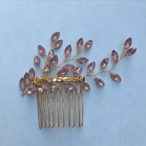 New! Leaf gold hair comb in pink tone.