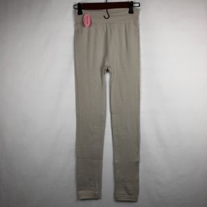 They are super soft and will keep you warm. Leggings are available in sand (cream) and black. One size fits most. They are very stretchy and the sizes range from a size 2-14. It is 65% polyester, 20% cotton, and 15% spandex. Approximate measurements: