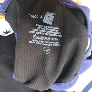 Size 28 could fit small or medium imo. Navy blue on the outside, black on inside. Back bottoms have cute cutoffs