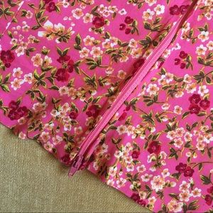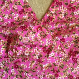 Super cute, super sturdy, and in GREAT condition! This vintage top has a white, yellow, red & green floral pattern on a vibrant pink and a fully functioning side zipper—clean, no tears, no stains, no discoloration. Unique & great for summer. Labeled a size M but would definitely fit an S.