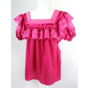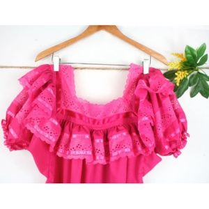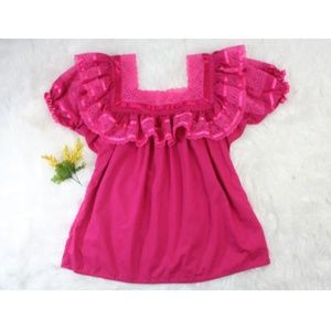 Handmade Mexican Pink Ruffles & Ribbons Top