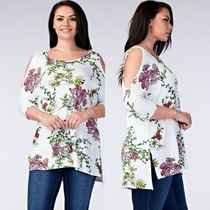 💖PLUS Floral Cold Shoulder Tunic Top