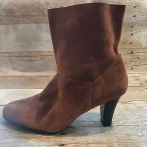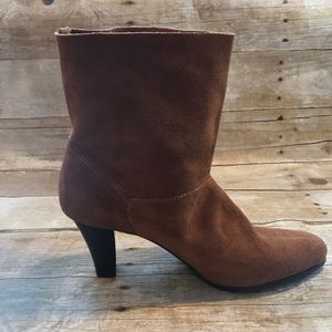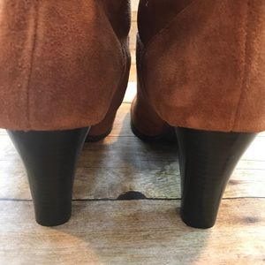 NWOT Markon camel colored suede boots. Size 9 1/2. Heel is 3 1/2” high. Boot is 9 1/2” tall. S3