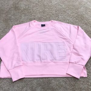 New! Nike size large women’s light pink terry training Cropped L/S Top / sweatshirt. The color is brighter in pics than the real one . The last pic shows the true color.
