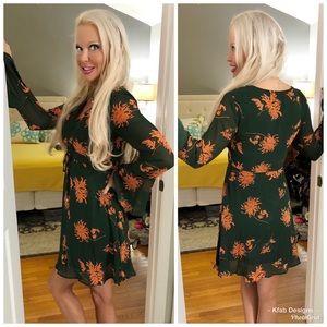 ❤️ LAST 1! Green/Rust Bell Sleeve Floral Dress