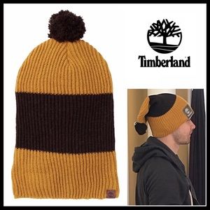 TIMBERLAND POM POM STRIPE COLOR-BLOCK UNISEX BEANIE HAT