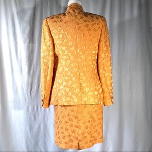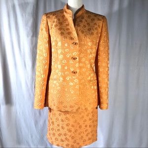 Louis Feraud Tangerine Floral Skirt Suit